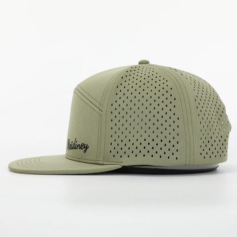 OEM Custom korkealaatuinen kirjonta -logo Luxury 7 Paneel Snapback Cap Adult Flat Bill Snap Back Hat Laser Cut -reiät